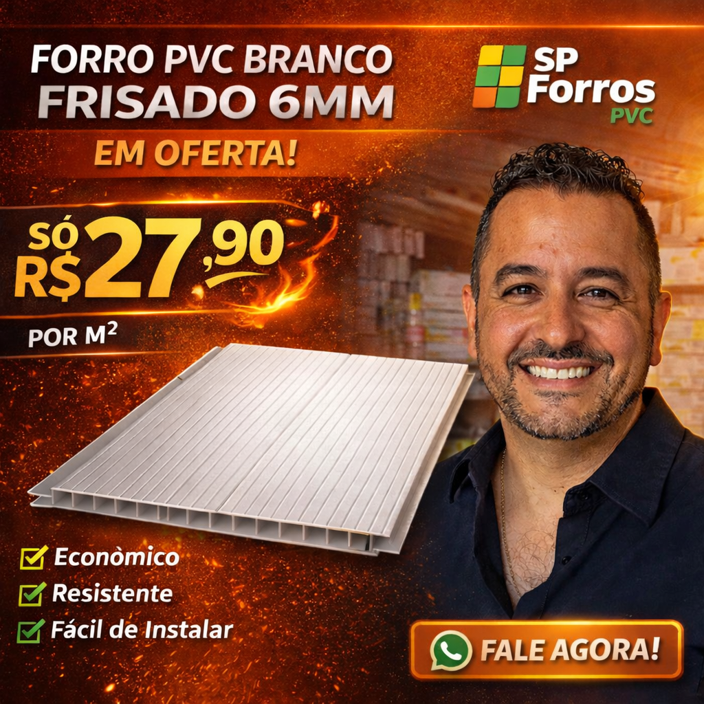 O forro mais vendido da SP Forros PVC. Resistente, econômico, bonito e fácil de instalar. Ideal para quem quer resolver rápido, gastar menos e ter um acabamento limpo e profissional.