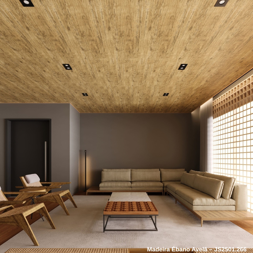O Forro Vinilico Madeira Ébano Fosco da Plasbil representa o auge do acabamento amadeirado em PVC, pensado para projetos sofisticados e ambientes de alto padrão. Com textura fosca de toque suave e visual elegante, este revestimento transforma espaços em verdadeiros ambientes de referência.